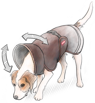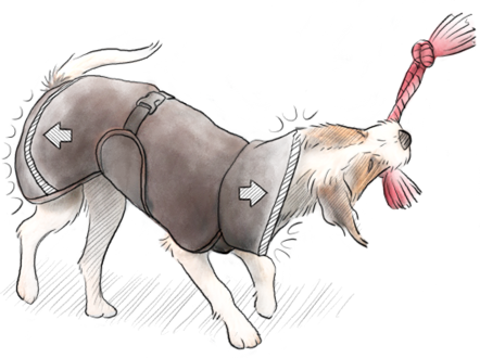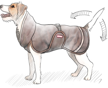 Oft beruht die Passform der Hinterhand eines Hundemantels auf Gummibändern, die um die hinteren Beine eines Hundes gezogen werden. Sie sind schwerfällig und können die Beine Ihres Hundes scheuern oder die Bewegung einschränken. Pomppa braucht die Bänder nicht und passt auch bei den wildesten Bewegungen.